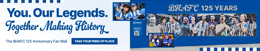 This fan wall honours the players who have defined Brighton & Hove Albion’s journey across generations. Each individual featured here represents a milestone in the club’s history—whether through their record-breaking achievements, unwavering loyalty or groundbreaking contributions to the men’s and women’s game. From homegrown heroes to global icons, these figures embody the spirit, ambition and resilience that have shaped Albion’s identity for 125 years.
