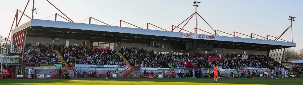 There are multiple catering kiosks at Broadfield Stadium where you can grab snacks pre-match and at half-time. Located both internally and externally, they will be selling a range of food as well as hot and cold drinks.