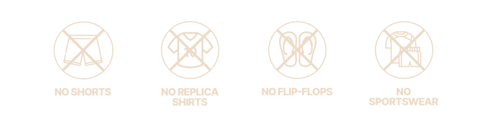 Entry will be denied if you're wearing replica shirts, flip flops or sportswear.
